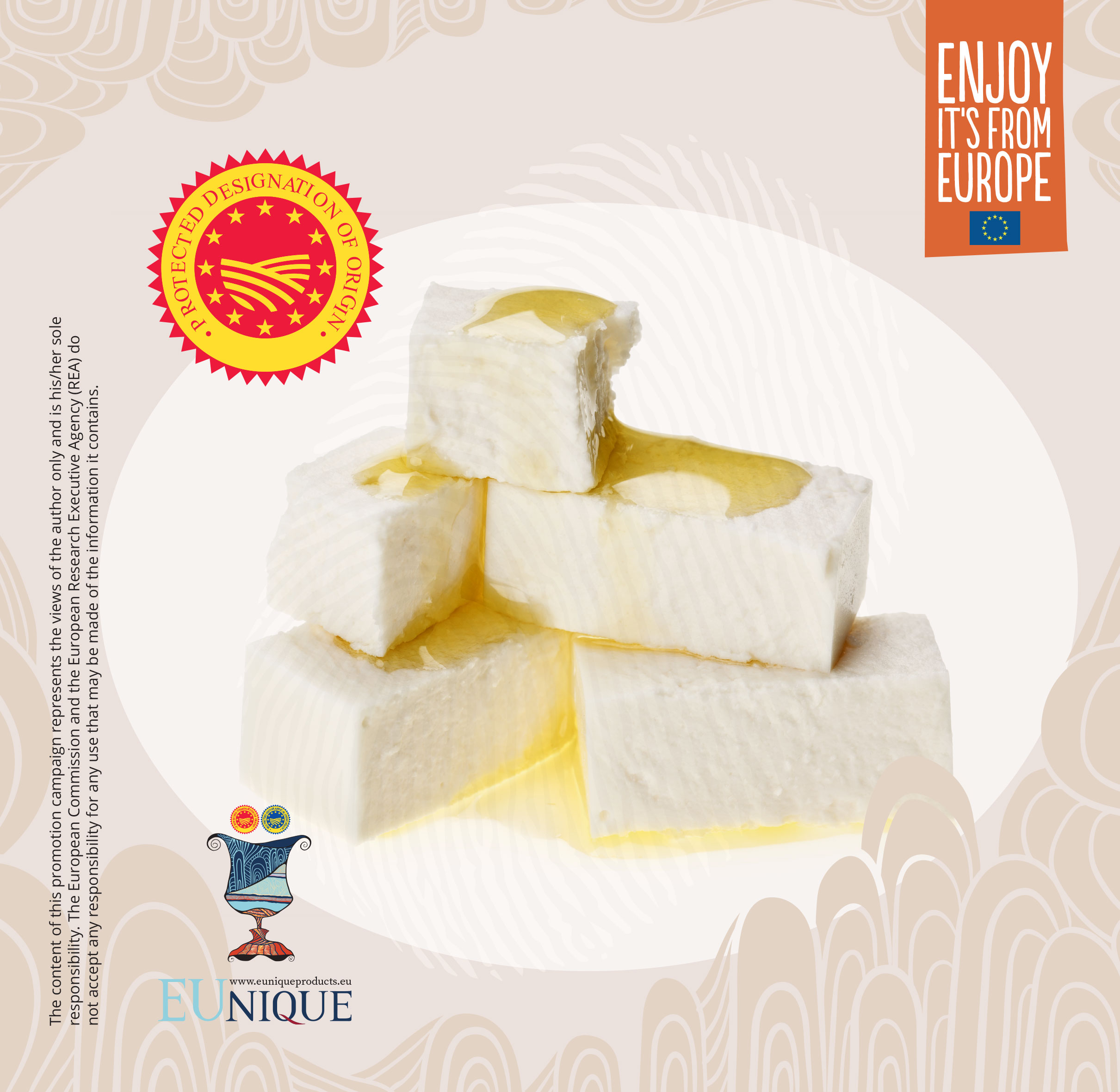 Feta PDO is a landmark of Greek PDO cheeses, made only by Greek sheep and goat,in a ratio of at least 70% sheep and up to 30% goat. Her fat is about 43% and her moisture about 55%. What makes her unique is her very rich taste, which spicy or mild, makes feta PDO a fantastic cheese that you definitely has to add in your daily diet.